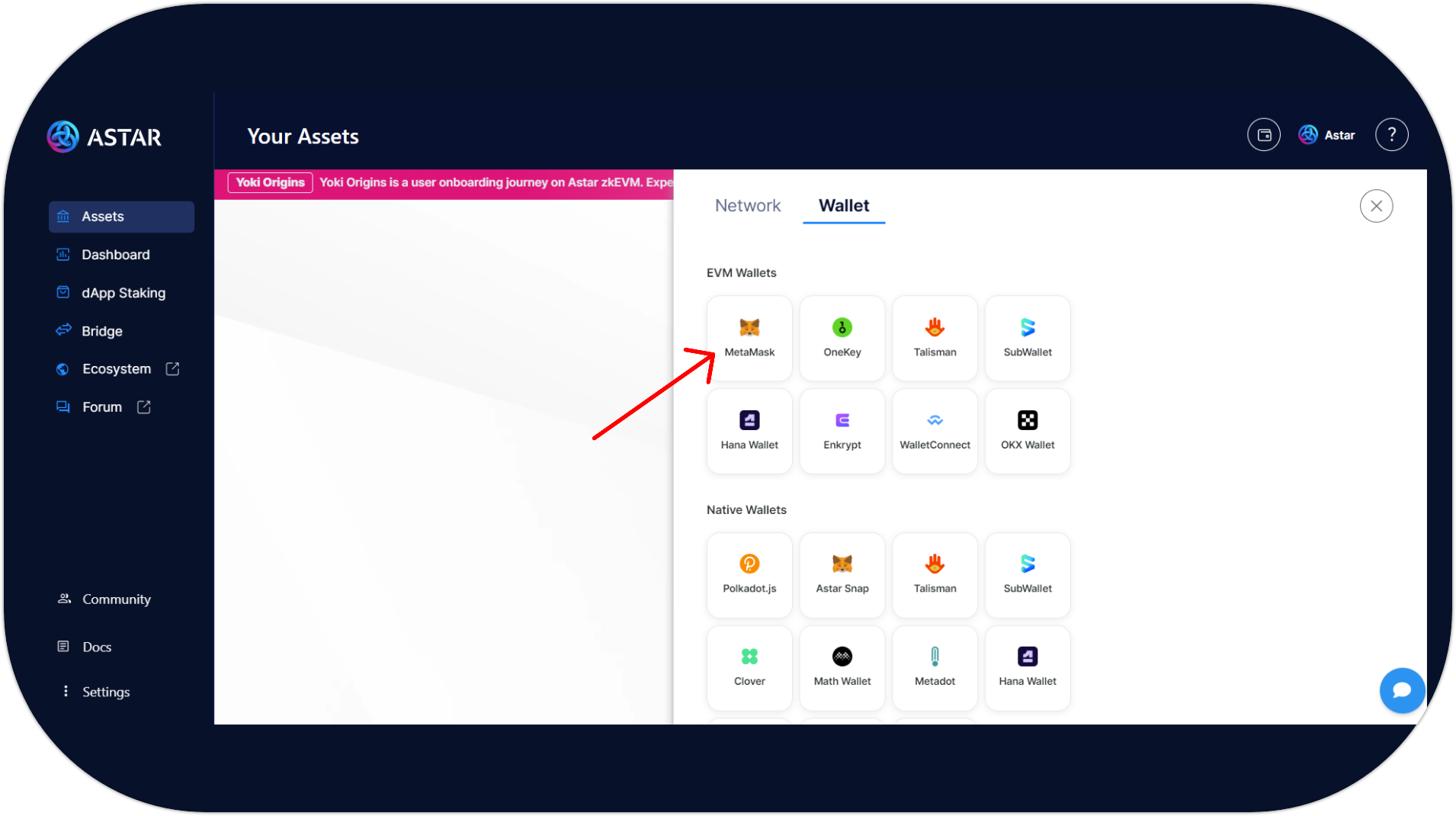 1. Go to the Astar Portal and connect your Metamask wallet.